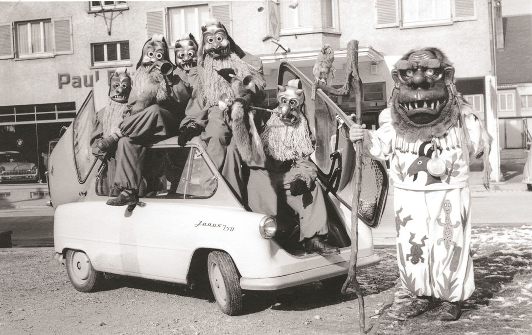 1957 hatten die fünf Urdämonen zusammen mit dem Groggadäler ihren ersten öffentlichen Auftritt in Schwenningen. Die Masken wurden von Eduard Hermanutz geschnitzt, das Häs von Schneidermeister Hans Kunze gefertigt.